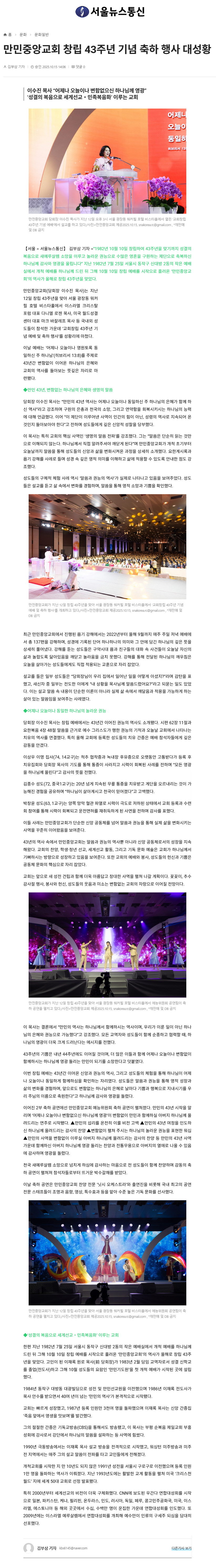 ¸¸¹ÎÁß¾Ó±³È¸ ⸳ 43Áֳ⠱â³ä ÃàÇÏ Çà»ç ´ë¼º