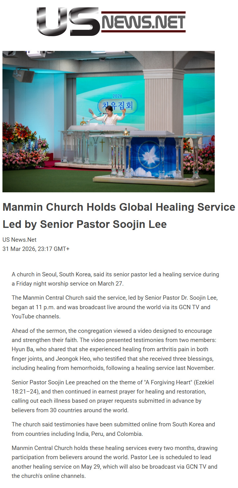 Dr. Soojin Lee Leads Manmin Church's Global Healing Service